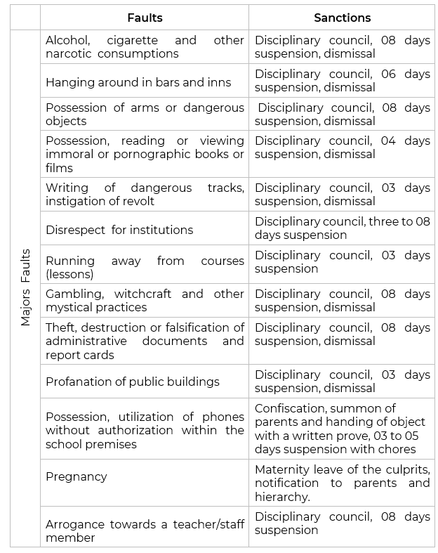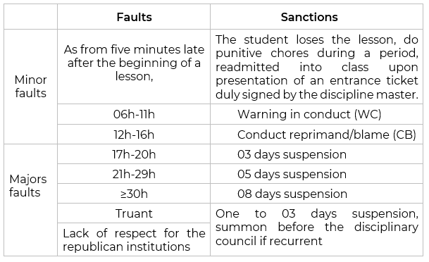 – Sanctions are only meted out by the administrative staff (principal, discipline master), disciplinary and class councils. The rest of the staff propose sanctions;