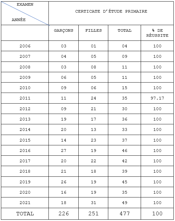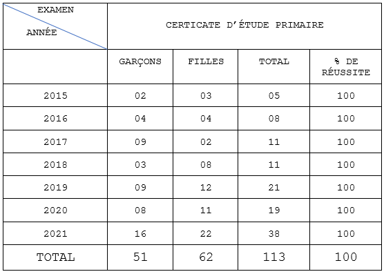 3- NCBS : Résultats au Certificat d’Étude Primaire